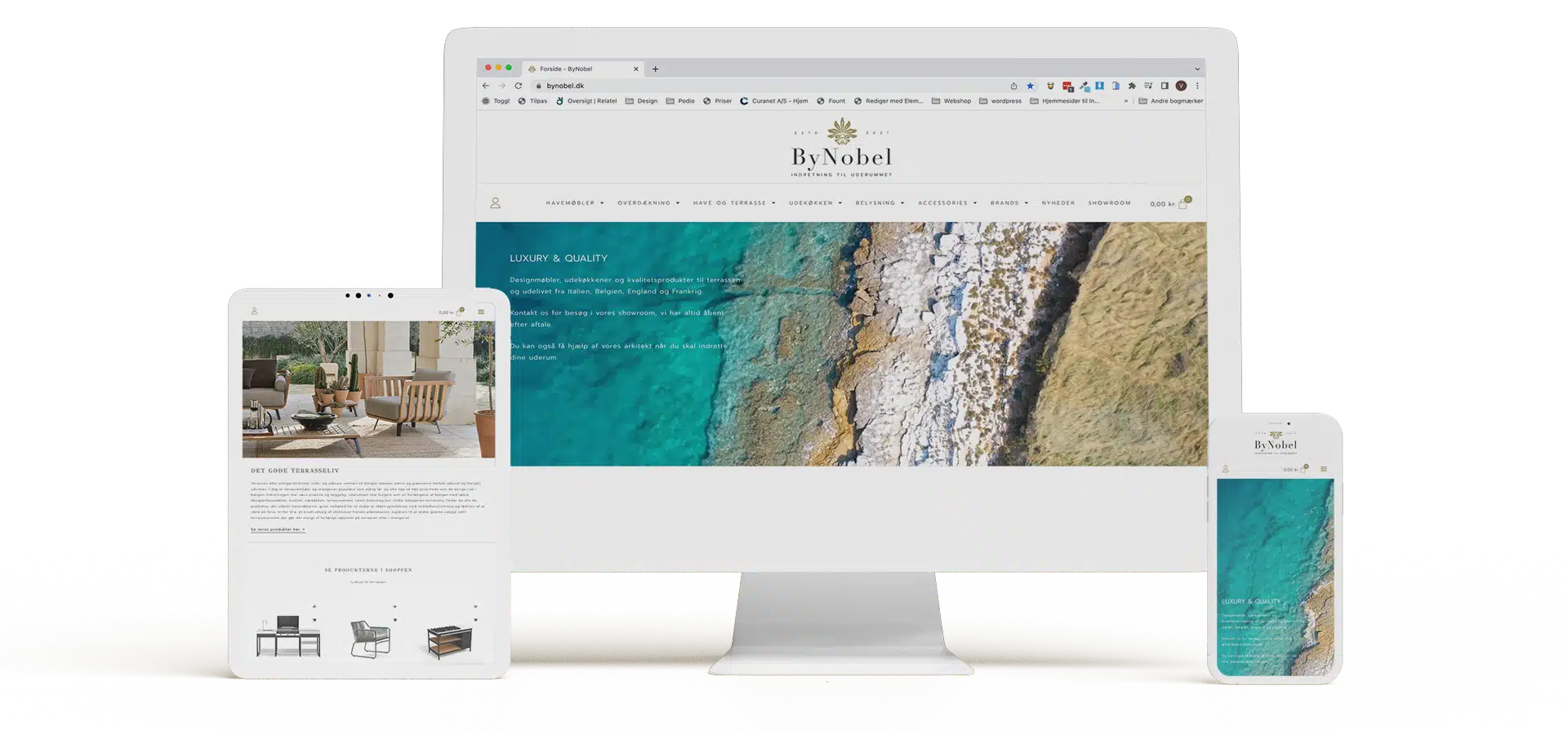Som et team identificerede vi et passende navn og skabte et logo, der resonerede med kundens identitet. Derefter udviklede jeg webshoppen, der blev inspireret af middelhavets sommerlige atmosfære, kombineret med et skandinavisk, minimalistisk og stilrent design.